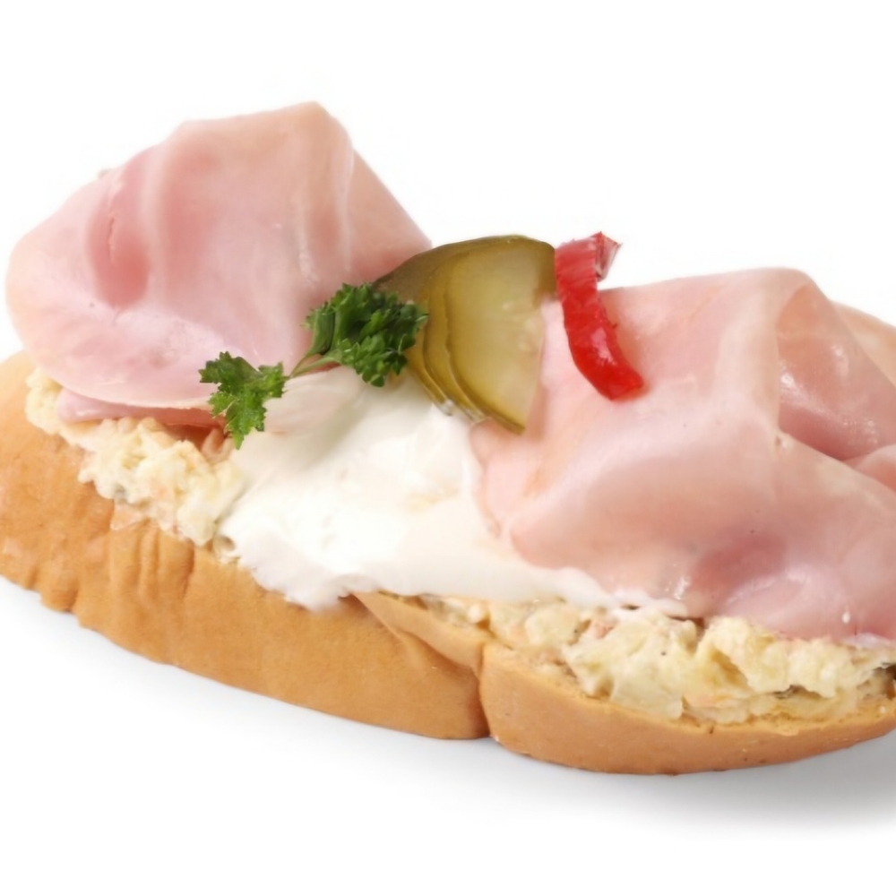 Chlebíček so suchou salámou a vajíčkom a zeleninovou oblohou