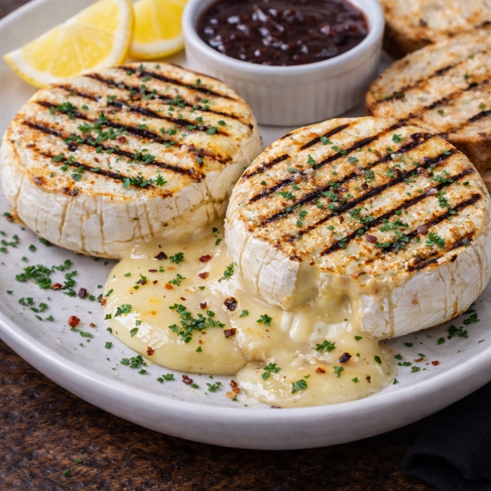 Grilovaný hermelín so zlatistou kôrkou, vhodný ako bezmäsité jedlo na catering.