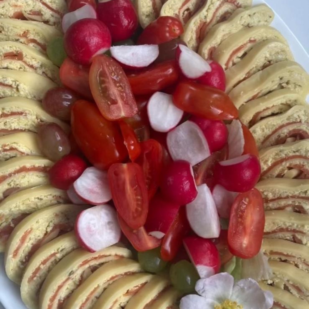 Syrová roláda plnená podľa výberu – šunka, špenát alebo losos.