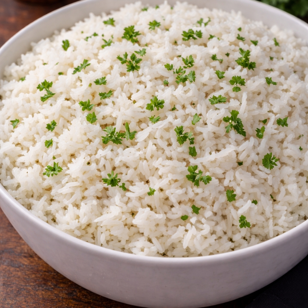 Klasická varená ryža ako príloha ku cateringovým jedlám.