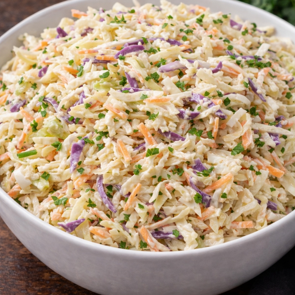 Tradičný kapustový šalát Coleslaw s jemným dresingom.